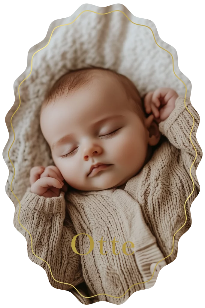 Dit luxe geboortekaartje is afgewerkt met een schulprand en goudfolie. Maak het kaartje extra persoonlijk met een foto van jullie mooie wonder.