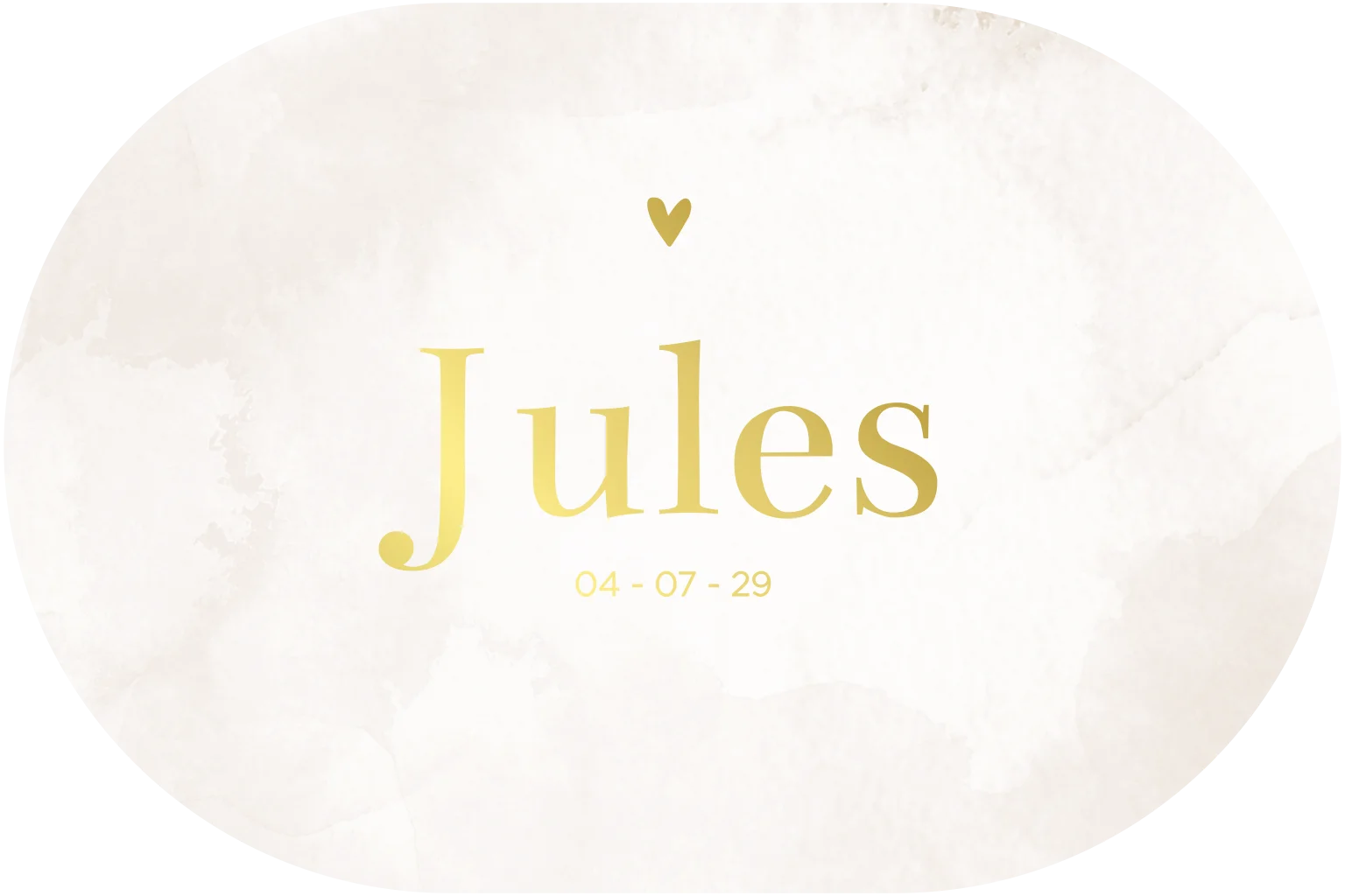Dit ovalen geboortekaartje heeft een aquarel achtergrond in beige kleuren. De goudfolie print geeft dit kaartje een luxe uitstraling. Door de neutrale kleuren is dit kaartje leuk voor zowel jongetjes als meisjes.