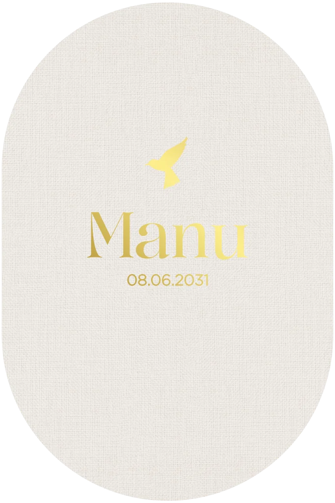 Hou je ook zo van linnen en neutrale kleuren? Kies dan dit ovalen geboortekaartje. Door de linnen achtergrond lijkt het net of dit kaartje op een linnen stof gedrukt is. De goudfolie en illustratie van een vogel maken dit kaartje uniek.