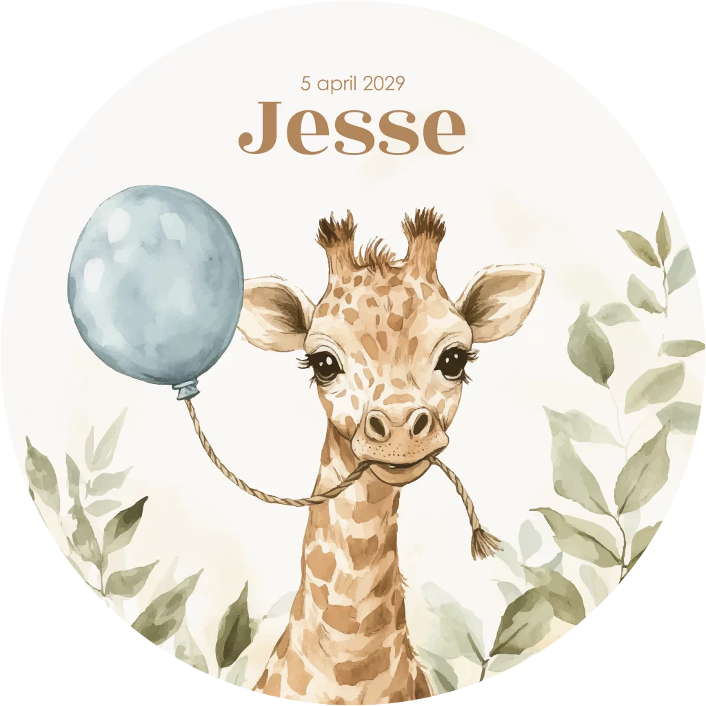 Dit geboortekaartje heeft een unieke ronde vorm met een grappige illustratie van een giraffe. Door de blauwe ballon is dit kaartje schikt voor de geboorte van jullie kleine man.