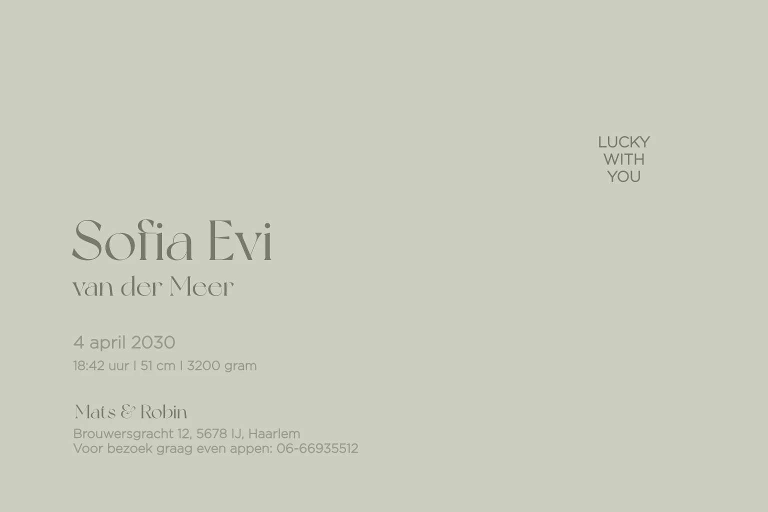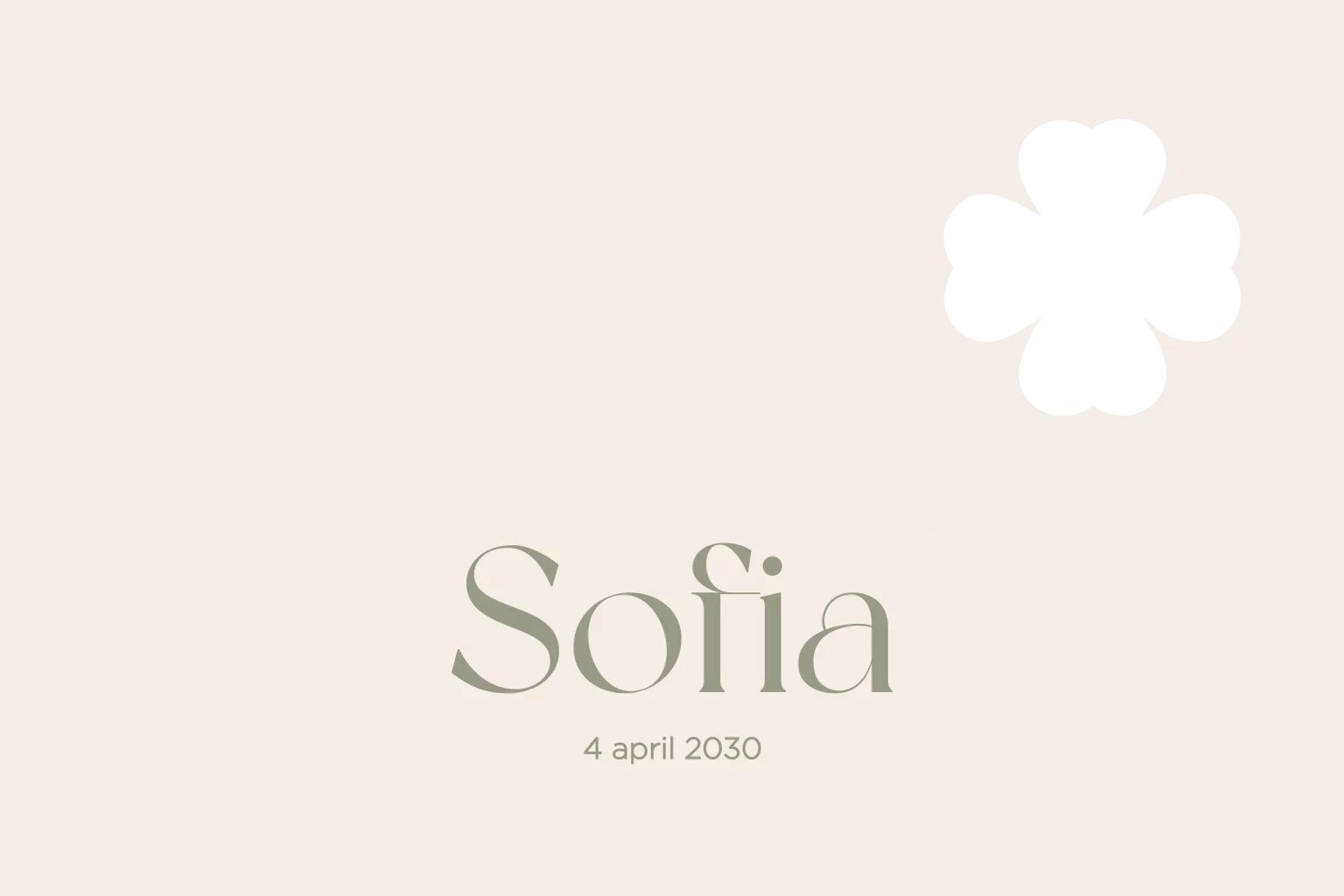 Dit unieke geboortekaartje heeft een doorkijkje in de vorm van een klavertje vier. Het klavertje vier staat voor liefde & geluk. Het neutrale kleurenpalet geeft dit kaartje een rustige uitstraling.