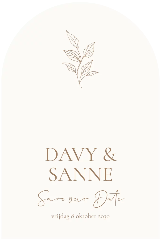 Gaan jullie trouwen en krijgt jullie bruiloft een bohemian thema? Deze boogvormige save the date kaart past daar perfect bij door de kleuren en illustratie. Verstuur vervolgens jullie trouwkaart in dezelfde stijl van deze trouwhuisstijl Boho Chic.