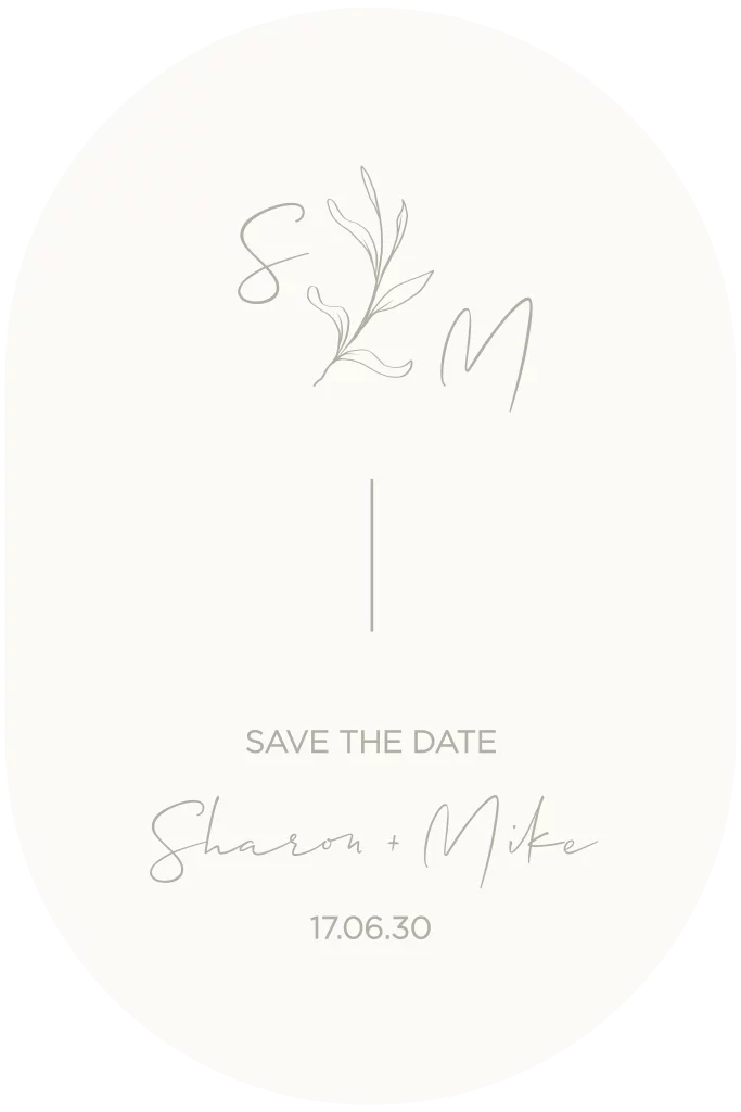 Deze minimalistische Save the Date kaart straalt rust en elegantie uit. Combineer de lijntekening van het takje met jullie initialen. Hierdoor hebben jullie ook gelijk een eigen logo welke je verder kunt laten terugkomen in de trouwhuisstijl Botanical Green.
