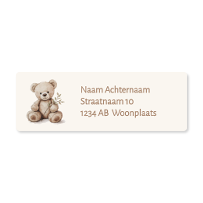 Maak je geboortepost extra bijzonder met deze adressticker met afgeronde hoekjes. De schattige beertje zorgt voor een lieve, persoonlijke afwerking van je enveloppen. Combineer de stickers met het bijpassende geboortekaartje voor een prachtig geheel. Bij ‘Opties selecteren’ kies je uit 1 tot en met 6 vellen, waarbij elk vel 14 adresstickers bevat.