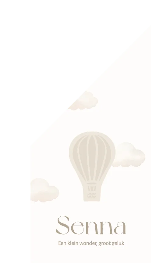 Deze dromerige geboortevlag met zachte wolkjes en een luchtballon is perfect om de komst van jullie baby op een opvallende manier aan te kondigen. De vlag (60x60x120 cm) is aan beide zijdes te ontwerpen. Dankzij het weerbestendige PVC kun je hem zorgeloos buiten hangen en eenvoudig bevestigen aan je eigen vlaggenstok. Bewaar hem na de geboorte, zodat je hem bij een verjaardag of andere bijzondere mijlpaal opnieuw kunt ophangen.