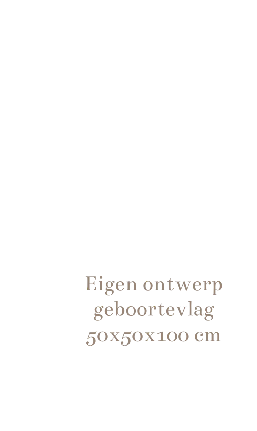 Laat iedereen weten dat jullie baby er is met deze geboortevlag van 50x50x100 cm. Maak een persoonlijk ontwerp aan beide zijdes. Heb je vragen of hulp nodig bij het ontwerp? Wij helpen je graag!