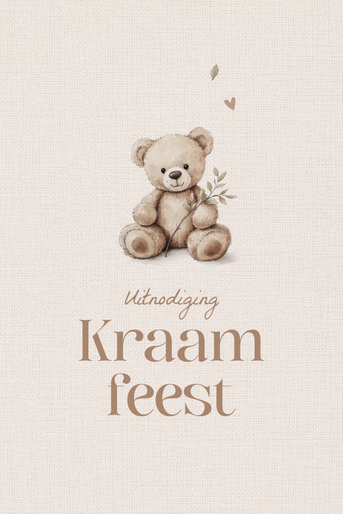 Een lief kraamborrel kaartje met beertje, linnenlook en zachte kleuren. Combineer het met het bijpassende geboortekaartje voor een sfeervol geheel. Dankzij het kleine formaat is het ideaal om toe te voegen aan je geboortepost.