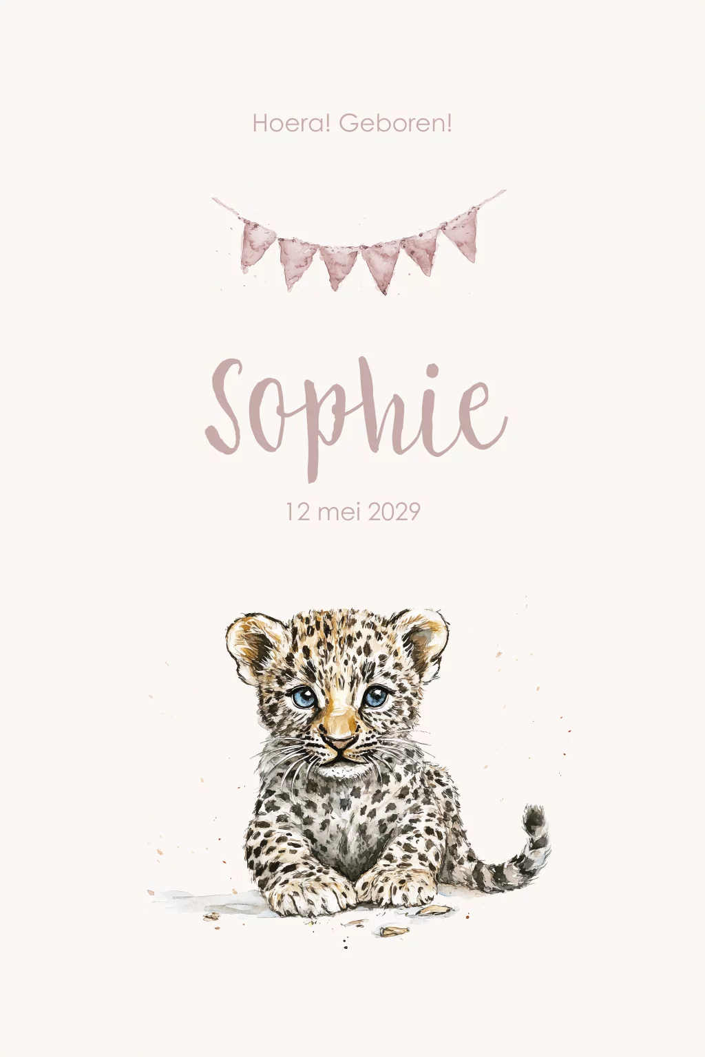 Bestel een poster van jullie geboortekaartje en je hebt voor altijd een tastbare herinnering voor jullie dochter. De poster met luipaard heeft het formaat 30x40 cm. Op zoek naar een ander formaat? Stuur ons een berichtje en wij zetten dit voor jou in jouw account.