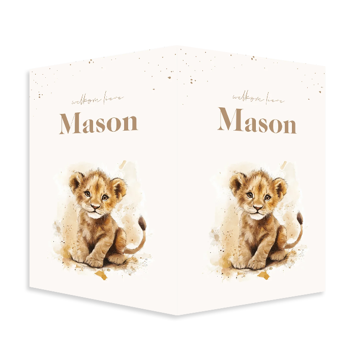 Met dit mooie geboorte raambord met een lief leeuwtje in natuurlijke tinten geef je je geboorteaankondiging een warme en persoonlijke uitstraling. Het formaat 40x60 cm zorgt voor optimale zichtbaarheid, zonder dat het te opvallend of druk wordt.
