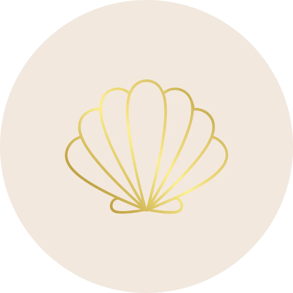 Deze beige sluitsticker heeft een illustratie van een schelpje in goudfolie. Dit heeft de sticker een luxe uitstraling. De sluitsticker is Ø35 mm en er zitten 25 sluitstickers op een vel.