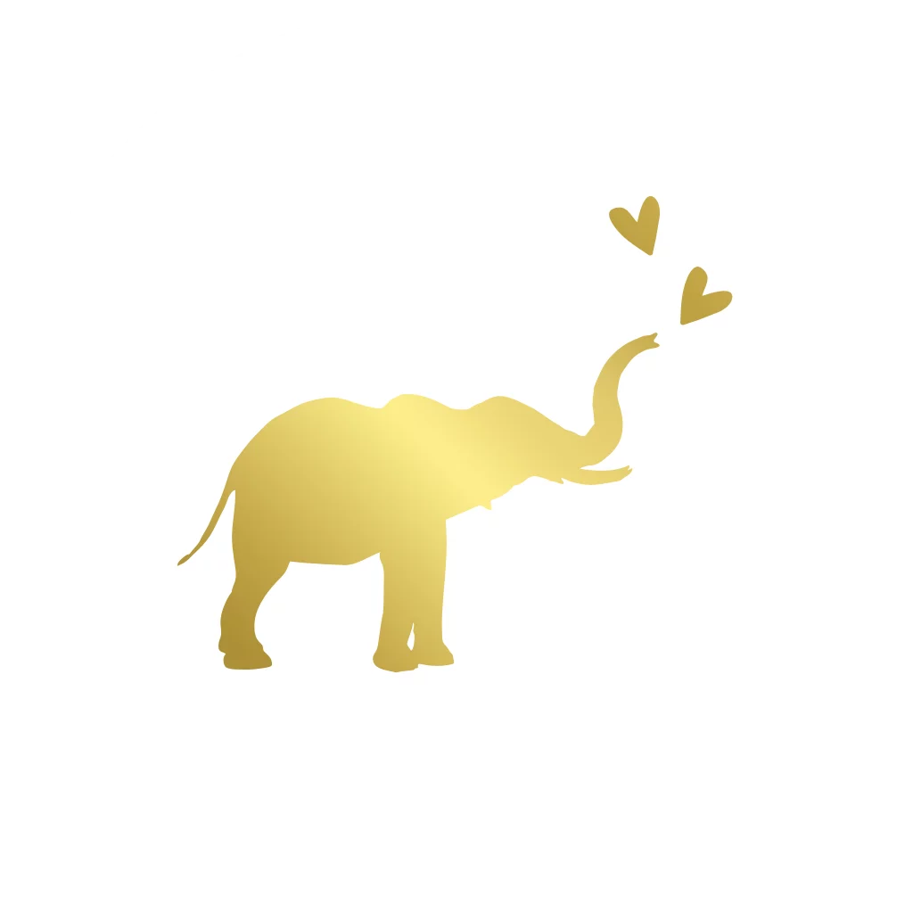 Laat het olifantje van jullie geboortekaartje terugkomen op de enveloppen door middel van een sluitsticker. De sluitsticker heeft een goudfolie van een olifantje die twee hartjes uitblaast.
