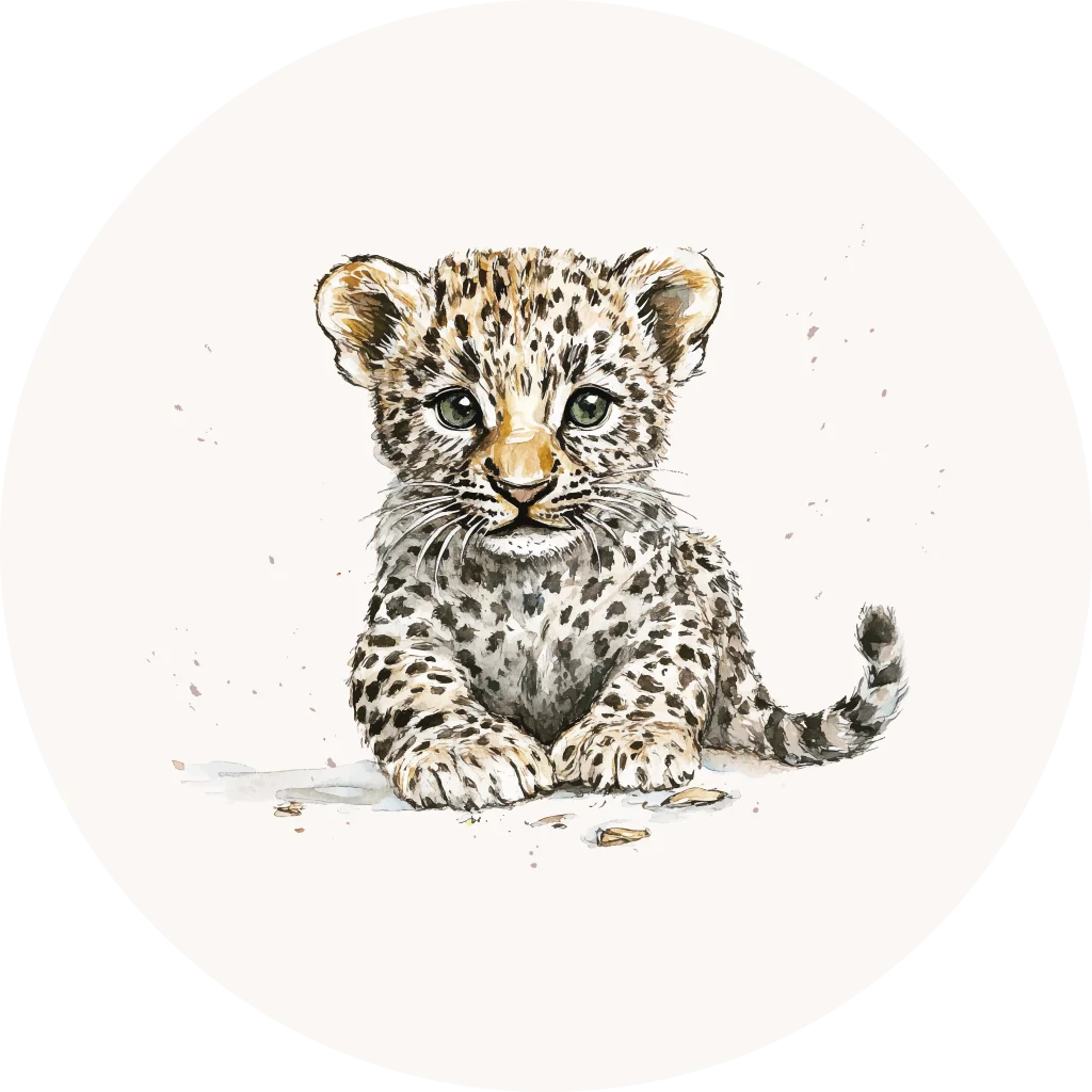 Hou je ook zo van dieren? Verstuur jullie geboortekaartjes met een sluitsticker met luipaard. Laat deze illustratie ook terugkomen op het geboortekaartje om alles in dezelfde stijl te versturen.