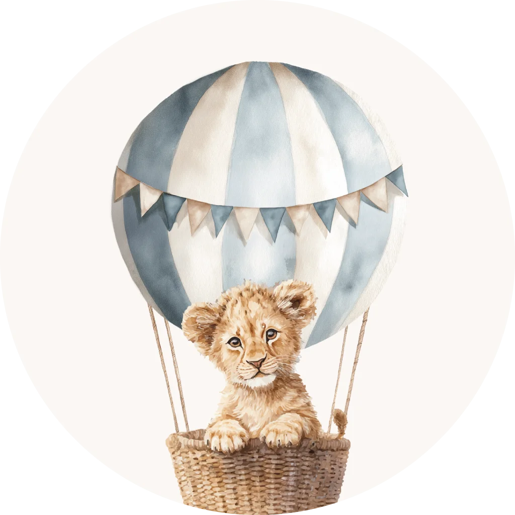 Deze sluitsticker met een lief leeuwtje in een blauwe luchtballon is een vrolijke toevoeging aan elk geboortekaartje. Leuk om enveloppen, bedankjes of traktaties mee te sluiten. De zachte kleuren en schattige illustratie passen perfect bij een geboortethema voor een jongen. Zo maak je je post net een beetje extra bijzonder.