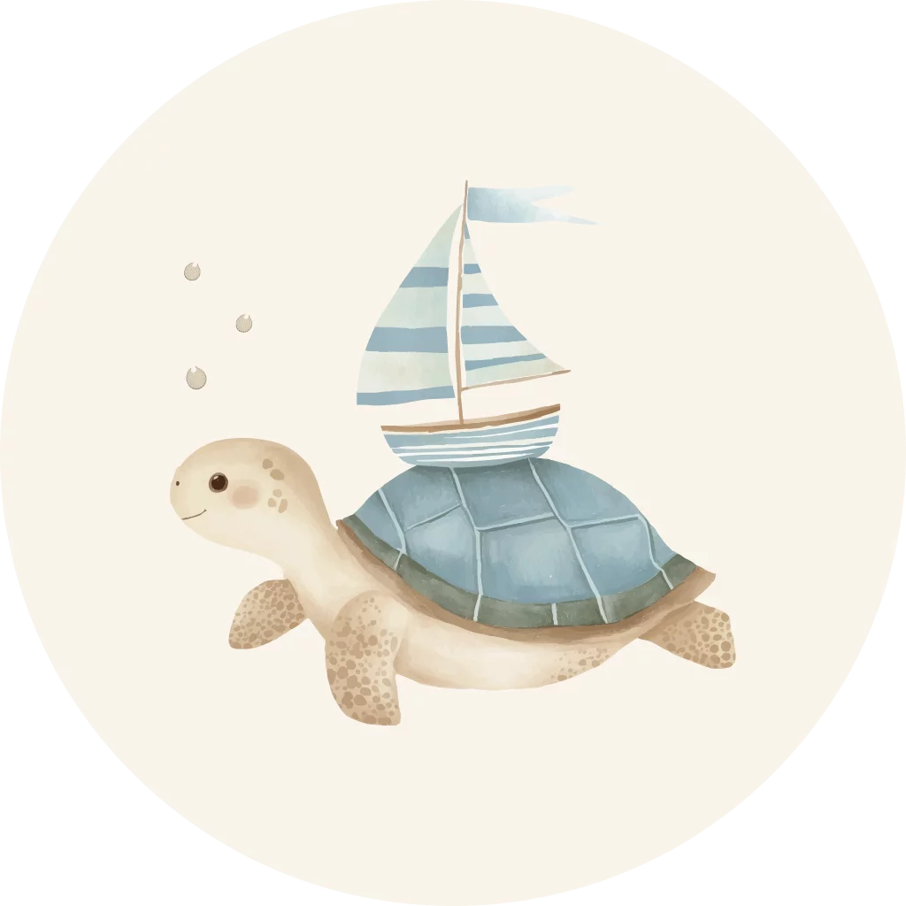 Hoe leuk is deze illustratie van een schildpad met een bootje op zijn schild. De envelop van jullie geboortekaartje is daarmee gelijk helemaal af.