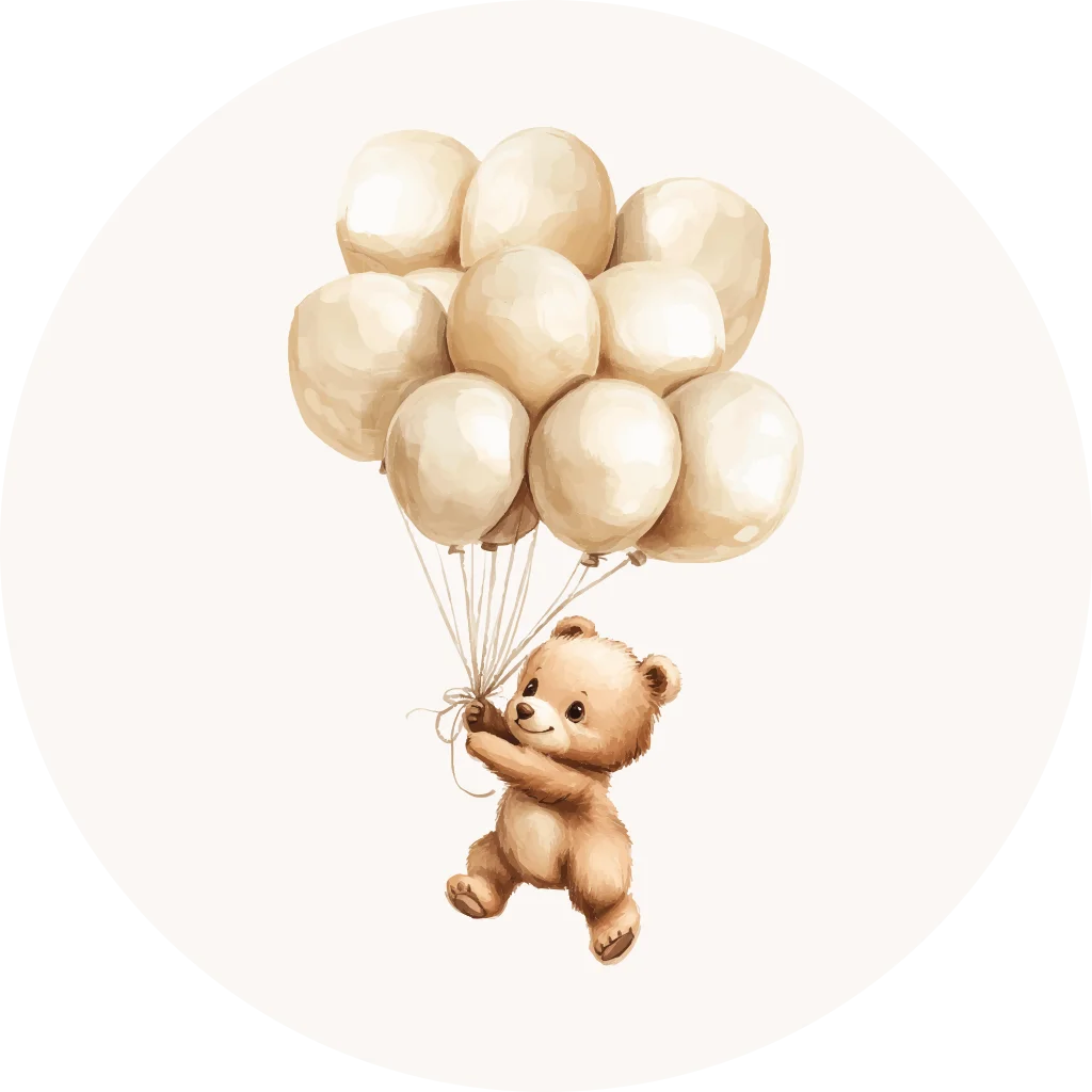 Vlieg mee met dit beertje aan de beige ballonnen. Door de neutrale kleuren is deze sluitzegel geschikt voor zowel jongens als meisjes.