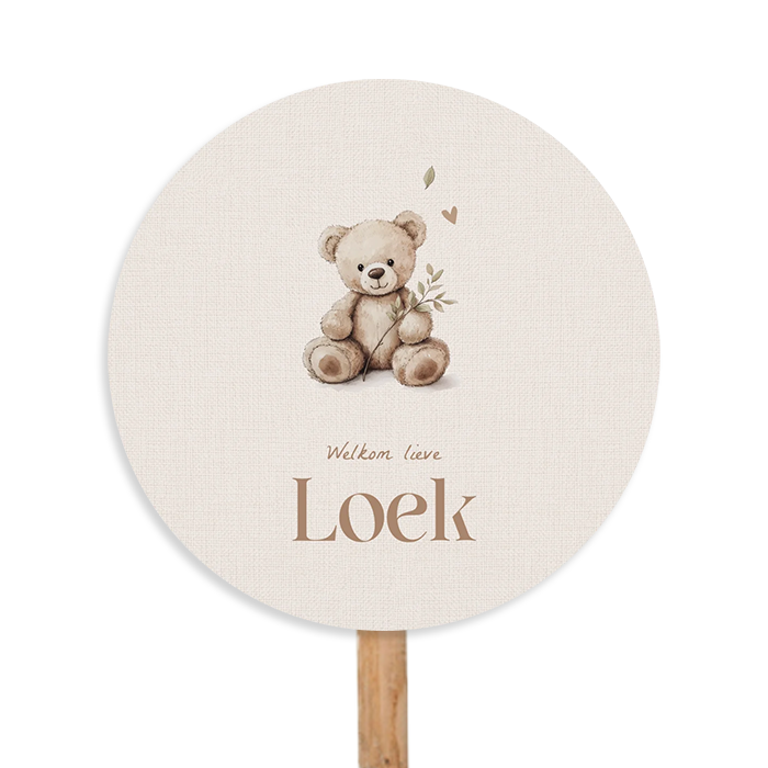 Maak de geboorte van jullie kindje extra bijzonder met dit lieve tuinbord in linnenlook met beertje. Met een formaat van 80 cm rond is het een prachtige eyecatcher in de tuin, helemaal in stijl met jullie geboortekaartje.