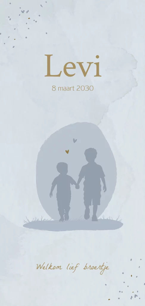 Dit geboortekaartje met een blauwe aquarel achtergrond is perfect voor de aankondiging van de geboorte van jullie zoon. Als twee broertjes gaan zij samen het avontuur aan.