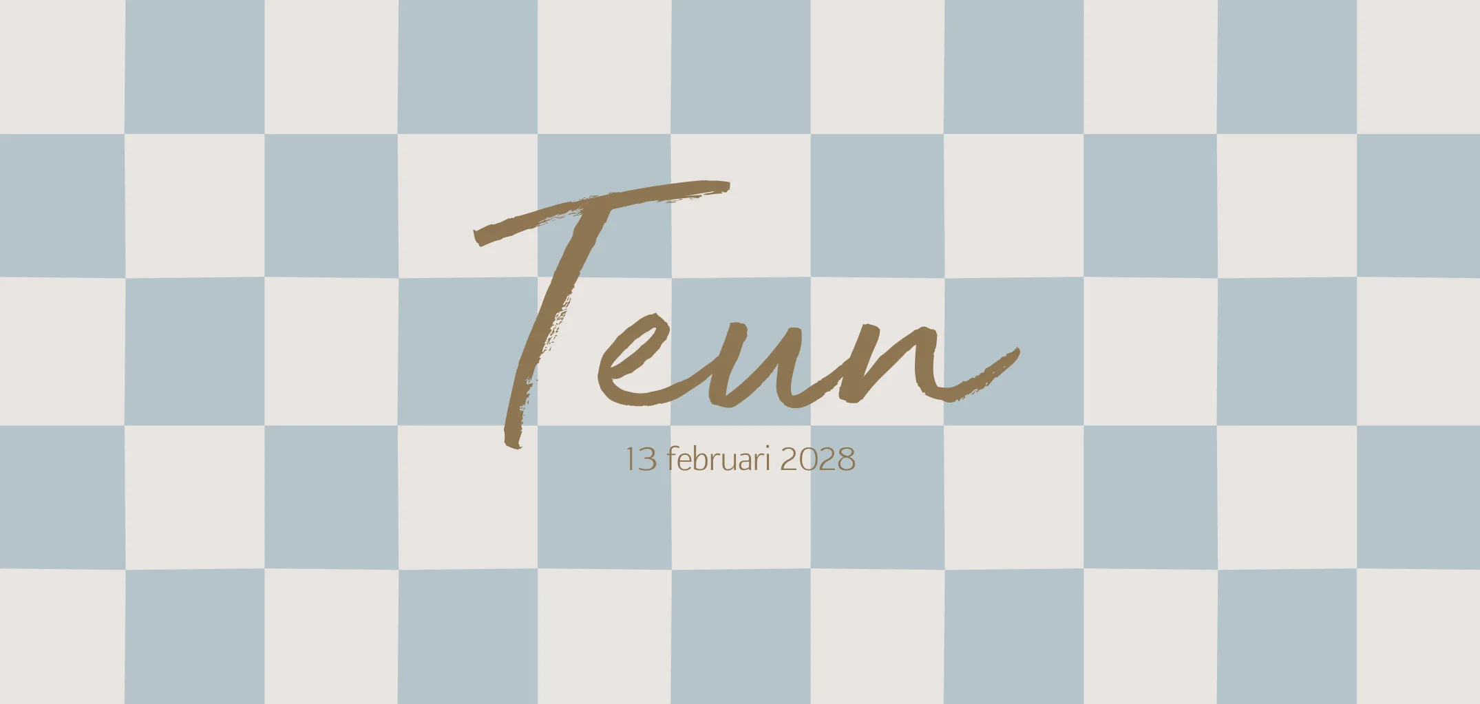 Geboortekaartje met blauw blokjespatroon voor jouw stoere vent. De grafische print is helemaal trendy.