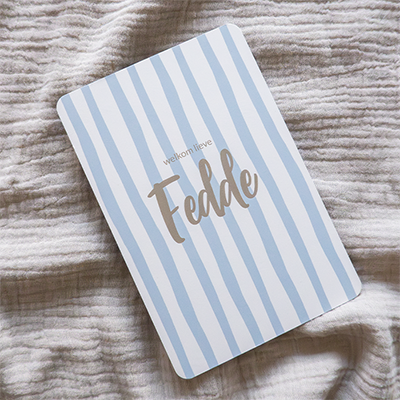 Op zoek naar een stoer geboortekaartje voor jullie kleine man? Dit kaartje is een echte eyecatcher met de blauwe streepprint en handgeschreven lettertype.