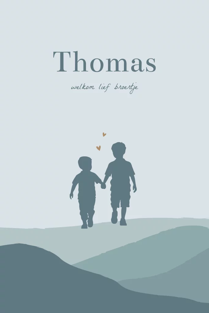 Stoer geboortekaartje heuvellandschap petrol broertjes