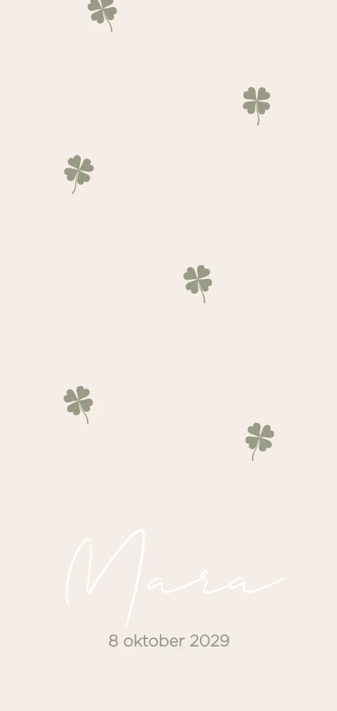 Hip geboortekaartje offwhite met groene klavertjes vier