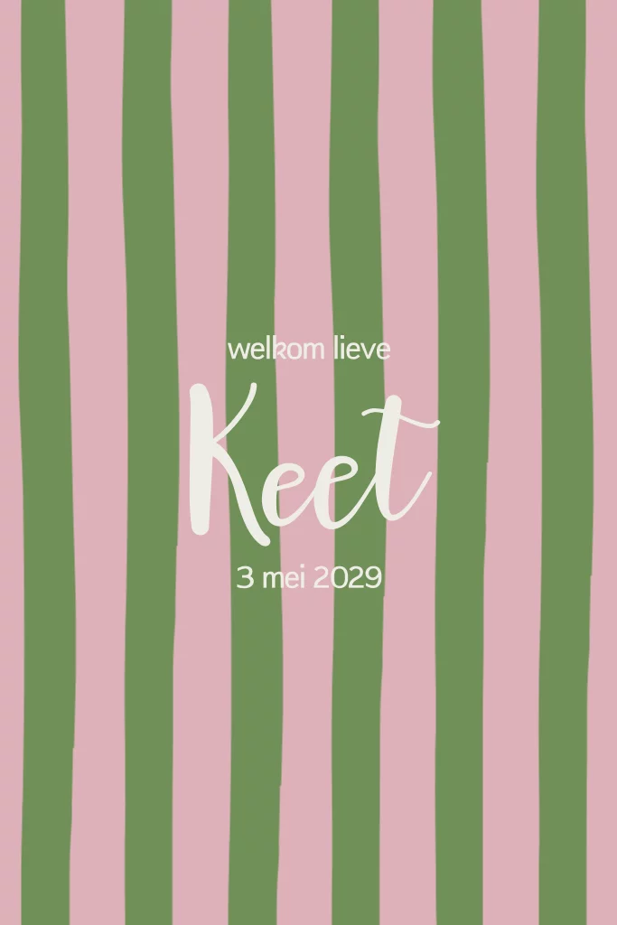 Hou jij van kleur? Dan is dit geboortekaartje geschikt voor jouw kleine meid. Het geboortekaartje heeft een speelse gestreepte print. De kleuren zijn aan te passen in elke kleur die je maar wilt.