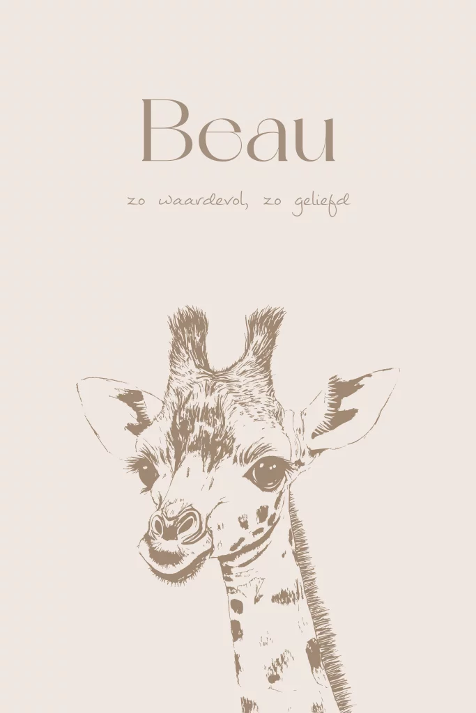 Dit neutrale geboortekaartje heeft een mooie lijntekening van de kop van een giraf. Het kaartje spreekt daardoor erg aan en is door de neutrale kleuren geschikt voor zowel een jongetje als een meisje.