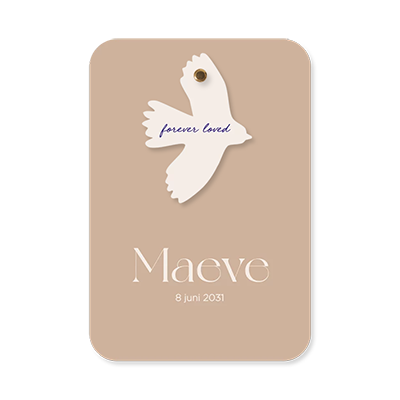 Dit trendy geboortekaartje van 11x16 cm combineert een warme bruine tint met een offwhite vogel-label van 5,5x7,5 cm. Het kaartje heeft een stijlvolle en moderne uitstraling. Het minimalistische ontwerp met natuurlijke kleuren maakt het een tijdloos en uniek kaartje. Personaliseer het met naam en geboortedetails om het helemaal eigen te maken. Bestel een proefdruk en bewonder het kaartje in het echt.