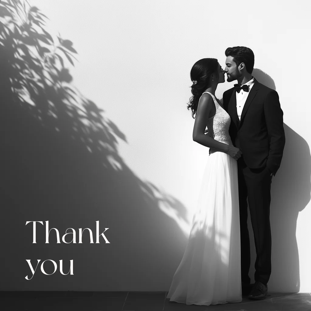 Deze minimalistische bedankkaart heeft een strak en eenvoudig ontwerp. Plaats jullie mooiste foto als bruidspaar op de kaart en stuur jullie bruiloftsgasten deze bedankkaart na.