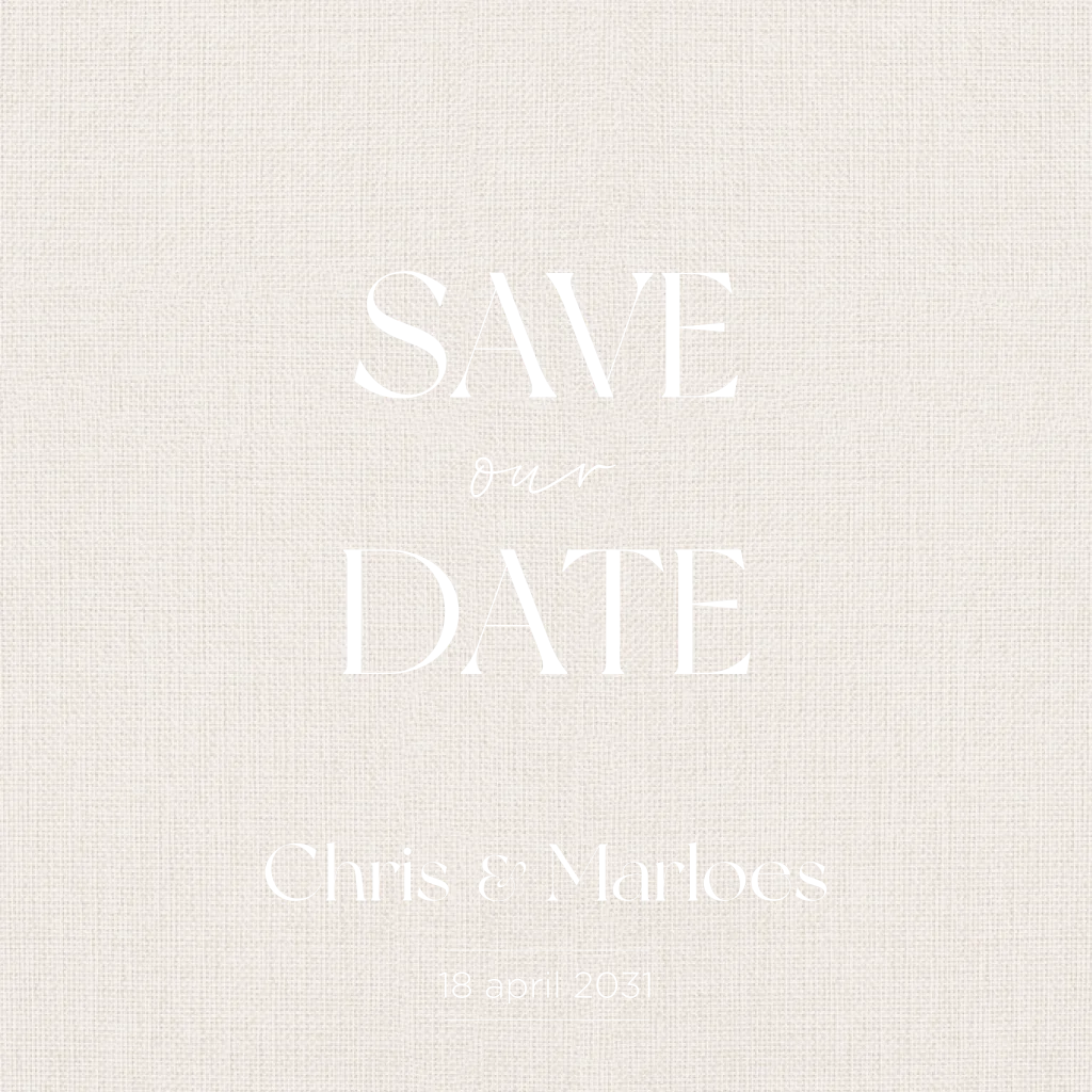 Kondig jullie grote dag stijlvol aan met deze luxe save the date kaart met linnenlook achtergrond en een verfijnde goudfolie. De combinatie van natuurlijke textuur en glanzend goud zorgt voor een chique en tijdloze uitstraling. Perfect voor een elegante bruiloft met oog voor detail. Laat familie en vrienden alvast weten dat ze deze datum mogen reserveren!
