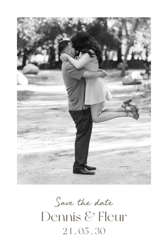 Hebben jullie een loveshoot gedaan of een andere mooie foto van jullie als stel? Plaats deze dan op de save the date kaart om hem extra persoonlijk te maken. Wist je dat er een hele trouwhuisstijl in deze mooie stijl voor jou klaar staat? Zo verstuur je jullie gehele drukwerk voor de bruiloft in dezelfde stijl.