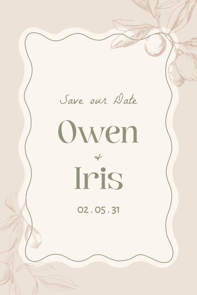 Een unieke save the date kaart in een warme zandtint, met verfijnde illustraties van een takje. Deze natuurlijke stijl past perfect bij een botanische bruiloft. Combineer met andere kaarten uit de Sage & Sand collectie om jullie trouwhuisstijl compleet te maken.