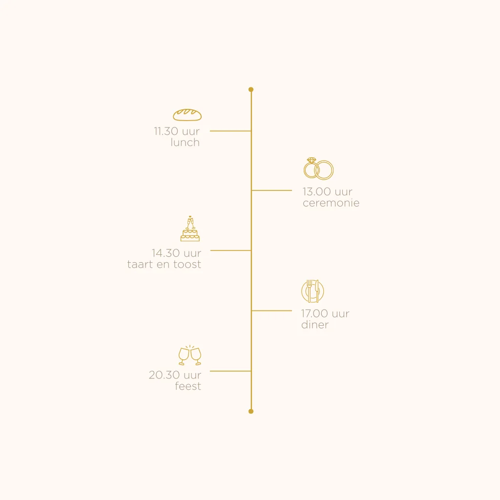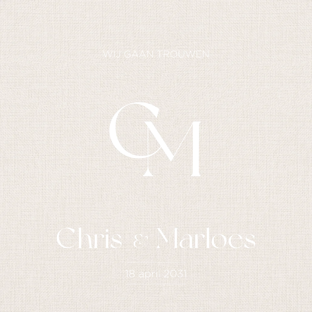Een tijdloze trouwkaart met zachte linnenlook en een stijlvol monogram in goudfolie. De trouwkaart is door het tijdloze ontwerp geschikt voor alle soorten bruiloften. De kaart straalt rust en luxe uit, waardoor jullie gasten direct een voorproefje krijgen van de sfeer op jullie dag.
